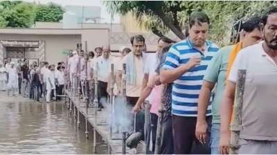 जुगाड़' ने किया कमाल: बारिश में श्मशान का रास्ता बंद, पार्षद ने 2 घंटे में पुल बनाकर आसान किया रास्ता