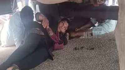 भीषण एक्सीडेंट: बाइक समेत बस के नीचे आई महिला, लोगों ने खींचकर निकाला