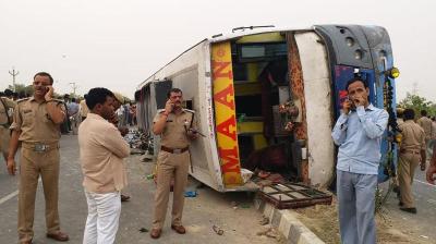 पूर्वांचल एक्सप्रेस-वे पर बस दुर्घटना, घायलों को नजदीकी अस्पताल में भर्ती कराया गया