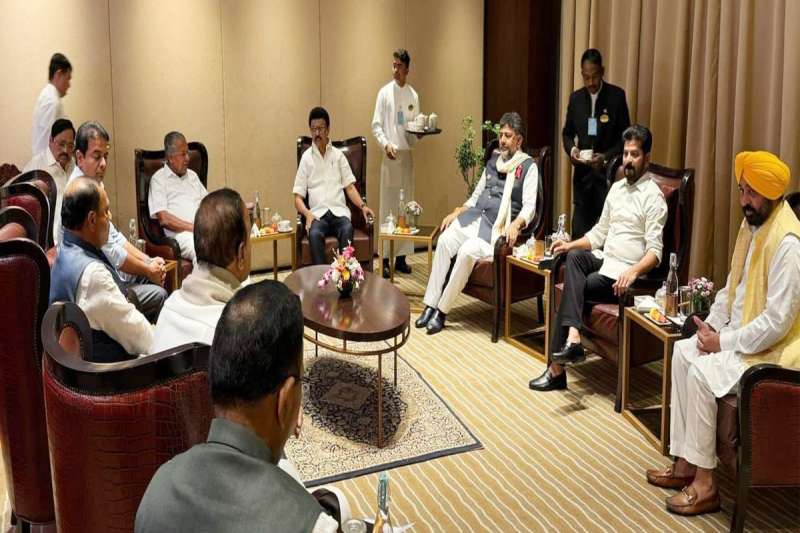 चेन्नई: तमिलनाडु के मुख्यमंत्री एम.के. स्टालिन ने शनिवार को चेन्नई में परिसीमन पर संयुक्त कार्रवाई समिति (जेएसी) की बैठक से पहले कई प्रमुख विपक्षी नेताओं का स्वागत किया। इस बैठक में दक्षिण भारत और देश भर के प्रमुख राजनीतिक हस्तियों ने भाग लिया है। चर्चा से पहले स्टालिन ने केरल के मुख्यमंत्री पिनाराई विजयन, तेलंगाना के मुख्यमंत्री रेवंत रेड्डी, पंजाब के मुख्यमंत्री भगवंत मान, कर्नाटक के उपमुख्यमंत्री डीके शिवकुमार और बीआरएस नेता केटी रामा राव का स्वागत किया। आपको बता दें कि मुख्य रूप से दक्षिण भारत के राज्य परिसीमन के मुद्दे पर अपनी चिंता व्यक्त कर रहे हैं।