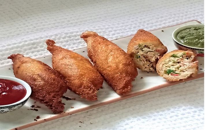 - ब्रेड को रोल करें और रोल के किनारों को मैदा के घोल से चिपकाकर बंद कर दें। इस तरह से सारी ब्रेड रोल बना लें।