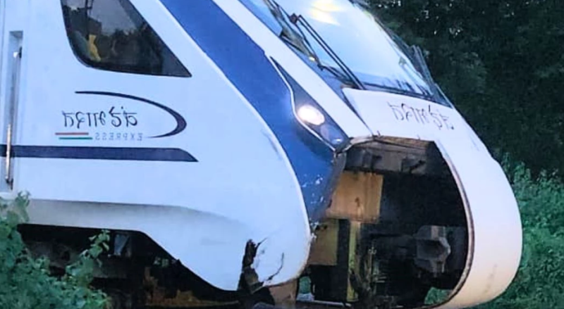 रेलवे के अनुसार शाम 5.50 बजे वंदेभारत की नोज से मवेशी टकरा गया। चालक ने गाड़ी रोकी। रेलवे की टीम मौके पर पहुंची। इंजन की जांच में सब कुछ सही पाए जाने पर ट्रेन को 6.20 पर रवाना कर दिया गया। इस दौरान कुछ ट्रेनों का परिचालन प्रभावित हुआ।