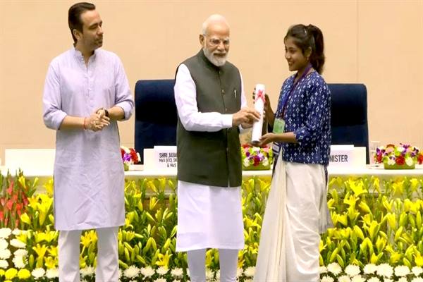 भोपाल : प्रधानमंत्री नरेन्द्र मोदी ने नई दिल्ली में कौशल एवं उद्यमशीलता मंत्रालय, भारत सरकार द्वारा 4अक्टूबर को आयोजित कौशल दीक्षांत समारोह में मध्यप्रदेश की शासकीय आईटीआई, बैतूल की इलेक्ट्रीशियन ट्रेड की प्रशिक्षार्थी कुमारी त्रिशा तावड़े को आल इंडिया सेंट्रल ज़ोन टू ईयर ट्रेड में टॉप करने पर सम्मानित किया है।