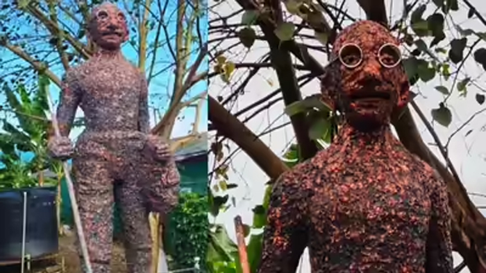 पिछले कई दिनों से गुरुवायुर नगर पालिका के बायो पार्क में गांधीजी की प्रतिमा लगाने का काम चल रहा था. सोमवार (27 अक्टूबर, 2025) को जब गांधी प्रतिमा का अनावरण हुआ, तो स्थानीय लोग और समारोह में मौजूद लोग इसे देखकर दंग रह गए. जाहिर है कि इससे पहले किसी ने भी महात्मा गांधी की ऐसी प्रतिमा नहीं देखी होगी. त्रिशूर बीजेपी के उत्तर जिला समिति सदस्य सुमेश कुमार और स्थानीय लोगों ने कहा कि सिर्फ चश्मा और लाठी जोड़ देने से कोई गांधी नहीं बन जाता.