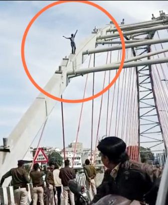 भोपाल। शहर के बड़े तालाब पर बने आर्च ब्रिज पर उस समय खासी अफरा-तफरी मच गई जब इस ब्रिज पर एक युवक अर्ध नग्न होकर करीब 50 फीट की ऊंचाई तक चढ़ गया। वह ब्रिज से तालाब में छलांग लगाने की धमकी दे रहा था। खबर मिलते ही जहॉ पुलिस टीम मौके पर पहुंची वही नगर निगम कर्मियो को भी बुलाया गया। इसके बाद काफी मशक्कत करते हुए पुलिस की निगम की टीम ने युवक को समझाइश देते हुए जैसै-तैसै सकुशल ब्रिज से नीचे उतारा, जिसके बाद वहॉ मौजूद पुलिस कर्मियो सहित भीड़ ने भी राहत की सांस ली। तलैया पुलिस ने बताया कि सोमवार दोपहर करीब 1:15 बजे युवक ब्रिज पर चढ़ गया था। राहगिरो ने इसकी सूचना डायल 112 पर दी थी। खबर मिलते ही मौके पर पहुंची पुलिस टीम ने नगर निगम की टीम की मदद से युवक को समझाइश देकर नीचे उतार लिया। युवक मानसिक रुप से कमजोर था। वहीं नगर निगम के गोताराखोर शेख आसिफ ने बताया कि युवक तालाब में कूदकर जान देने की धमकी दे रहा था, जिसे काफी समझाइश देते हुए नीचे उतारा है। उसका मानसिक संतुलन बिगड़ा हुआ है। वह अक्सर कमला पार्क के आसपास के इलाकों में भीख मांगता नजर आता है।