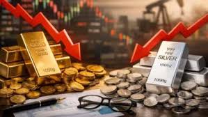 अंतरराष्ट्रीय बाजार में सोना और चांदी की कीमतों में गिरावट देखने को मिली। मजबूत अमेरिकी डॉलर और कच्चे तेल की बढ़ती कीमतों के कारण निवेशकों की सतर्कता बढ़ गई, जिससे कीमती धातुओं पर दबाव पड़ा।स्पॉट गोल्ड की कीमत 0.2% गिरकर 5,165.73 डॉलर प्रति औंस पर पहुंच गई। वहीं अप्रैल डिलीवरी के लिए अमेरिकी गोल्ड फ्यूचर्स भी 0.2% की गिरावट के साथ 5,171.40 डॉलर प्रति औंस पर कारोबार करता दिखा। चांदी की कीमत में ज्यादा बदलाव नहीं हुआ और स्पॉट सिल्वर 85.82 डॉलर प्रति औंस पर लगभग स्थिर रहा।इस बीच अमेरिकी डॉलर करीब 0.2% मजबूत हुआ। डॉलर के मजबूत होने से सोना-चांदी जैसी डॉलर में कीमत वाली कमोडिटी अन्य मुद्राओं के निवेशकों के लिए महंगी हो जाती हैं, जिससे मांग पर असर पड़ता है।
