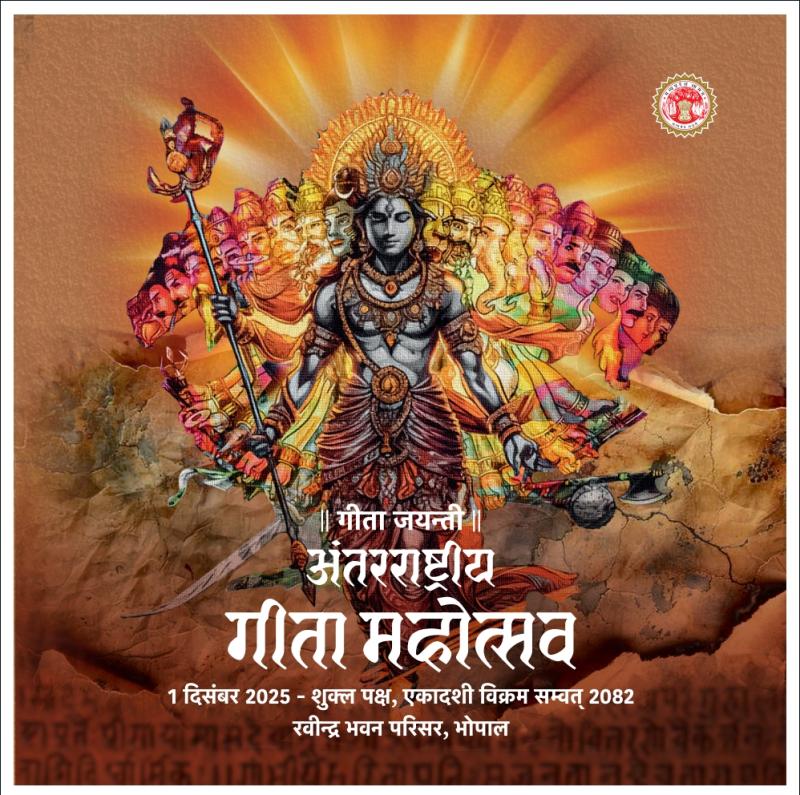 वीर भारत न्यास के न्यासी सचिव श्रीराम तिवारी ने बताया कि गीता जयंती 1 दिसंबर 2025 को मध्यप्रदेश में अंतर्राष्ट्रीय गीता महोत्सव भव्य स्तर पर मनाया जा रहा है। उन्होंने कहा कि गीता केवल धार्मिक ग्रंथ नहीं बल्कि जीवन जीने की कला सिखाती है। यह महोत्सव समाज में ज्ञान, कर्तव्य, अनुशासन और सकारात्मकता का वातावरण बनाने का माध्यम बनेगा।