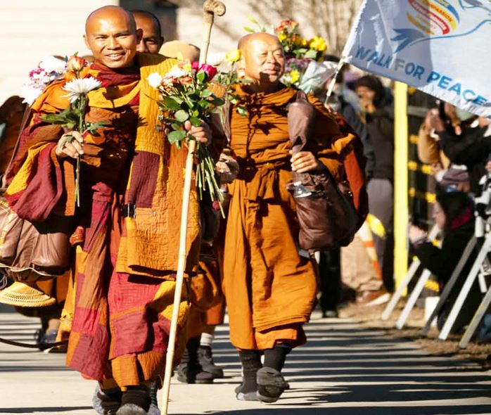 टैक्सास । अमेरिका के टेक्सास राज्य में बौद्ध भिक्षुओं की शांति यात्रा जारी है। 19 बौद्ध भिक्षु एक भारतीय कुत्ते के साथ यात्रा कर रहे हैं।इस स्वान का नाम बौद्ध भिक्षुओं ने आलोका रखा है। बौद्ध भिक्षुओं का यह दल फोर्ट वर्थ से लेकर वॉशिंगटन डीसी की 2300 मिल की पदयात्रा पर निकला है। सभी जगह इनका स्वागत किया जाता है तथा लोग इन्हें खान शाकाहारी खाना भी उपलब्ध कराते हैं। रुकने की व्यवस्था भी जहां से हैं, निकलते हैं वहां के निवासी करते हैं। बौद्ध भिक्षु शांति का प्रतीक बन गए हैं। इस यात्रा का उद्देश्य लोगों में करुणा और शांति का संदेश फैलाना है।
