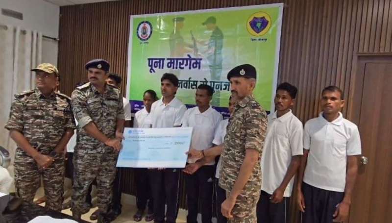 नक्सलियों ने डीआईजी कमलोचन कश्यप व पुलिस अधीक्षक डॉक्टर जितेंद्र कुमार यादव व अन्य सुरक्षाबलों के अधिकारियों के समक्ष आत्मसमर्पण किया है। आत्मसमर्पण करने वाले नक्सलियों में बक्सू ओयाम पार्टी सदस्य, माड़ डिविजन कंपनी नं. 01 (इनाम 8 लाख), बुधराम पोटाम एसीएम प्लाटून नं. 12 (इनाम 5 लाख), हिड़मा ऊर्फ हिरिया एसीएम प्लाटून नं. 13 (इनाम 5 लाख), मंगू उईका ऊर्फ टोग्गी तकनीकी टीम सदस्य, दक्षिण बस्तर डिविजन इनाम (2 लाख), रोशन कारम ऊर्फ सोनू पार्टी सदस्य, चिन्नापल्ली एरिया कमेटी, डीजीइन डिविजन (इनाम 2 लाख), मंगलों पोड़ियाम पार्टी सदस्य, भैरमगढ़ एरिया कमेटी (इनाम 2 लाख), कमलू हेमला ऊर्फ कुम्मा डीएकेएमएस सदस्य, फुलादी आरपीसी, बुधराम हेमला डीएकेएमएस सदस्य, फुलादी आरपीसी व पण्डरू पूनेम ऊर्फ पदखूटा भूमकाल मिलिशिया कमांडर, मनकेली शामिल है। सभी आत्मसमर्पित नक्सलियों को प्रोत्साहन स्वरूप 50,000-50,000 के चेक प्रदान किए गए। वहीं दूसरी ओर 1 जनवरी 2025 से अब तक जिले में 277 नक्सलियों ने आत्मसमर्पण किया है। वहीं 310 नक्सली गिरफ्तार हुए हैं। जबकि मुठभेड़ में 131 नक्सली मारे गए हैं। पुलिस अधीक्षक डॉ. जितेंद्र यादव ने नक्सलियों से अपील की कि वे भटकी राह छोड़कर शासन की पुनर्वास नीति का लाभ उठाएं और समाज की मुख्यधारा में लौटें।