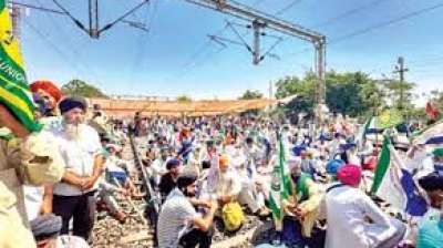 शंभू बॉर्डर पर किसानों ने रेलवे ट्रैक जाम किया