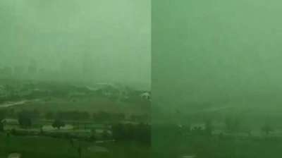 दुबई में दिखा अदभुत नजारा, देखते ही देखते हरा हो गया आसमान