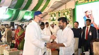 इफ्तार पार्टी में ओवैसी और रेवंत रेड्डी ने एक-दूसरे को गले लगाया