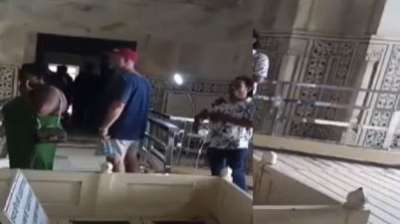 आगरा । आगरा के ताजमहल में घुसकर दो युवकों ने मुख्य मकबरे पर ऊपर से जल चढ़ा कर दीवार पर ओम का स्टीकर चिपका दिया। युवकों ने दावा किया कि...