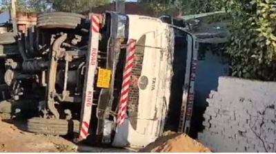 सड़क हादसा : अनियंत्रित होकर पलटा तेज रफ्तार कोयले से भरा ट्रेलर